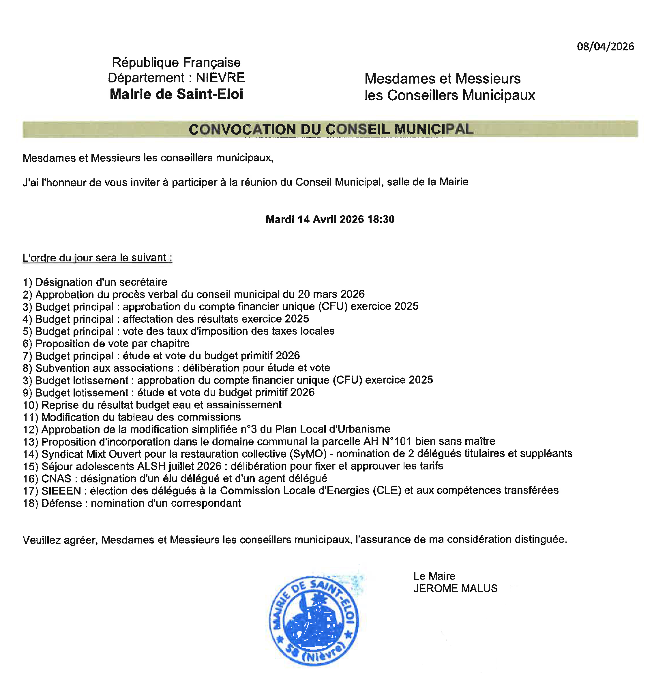 Conseil Municipal du 14-04-2026