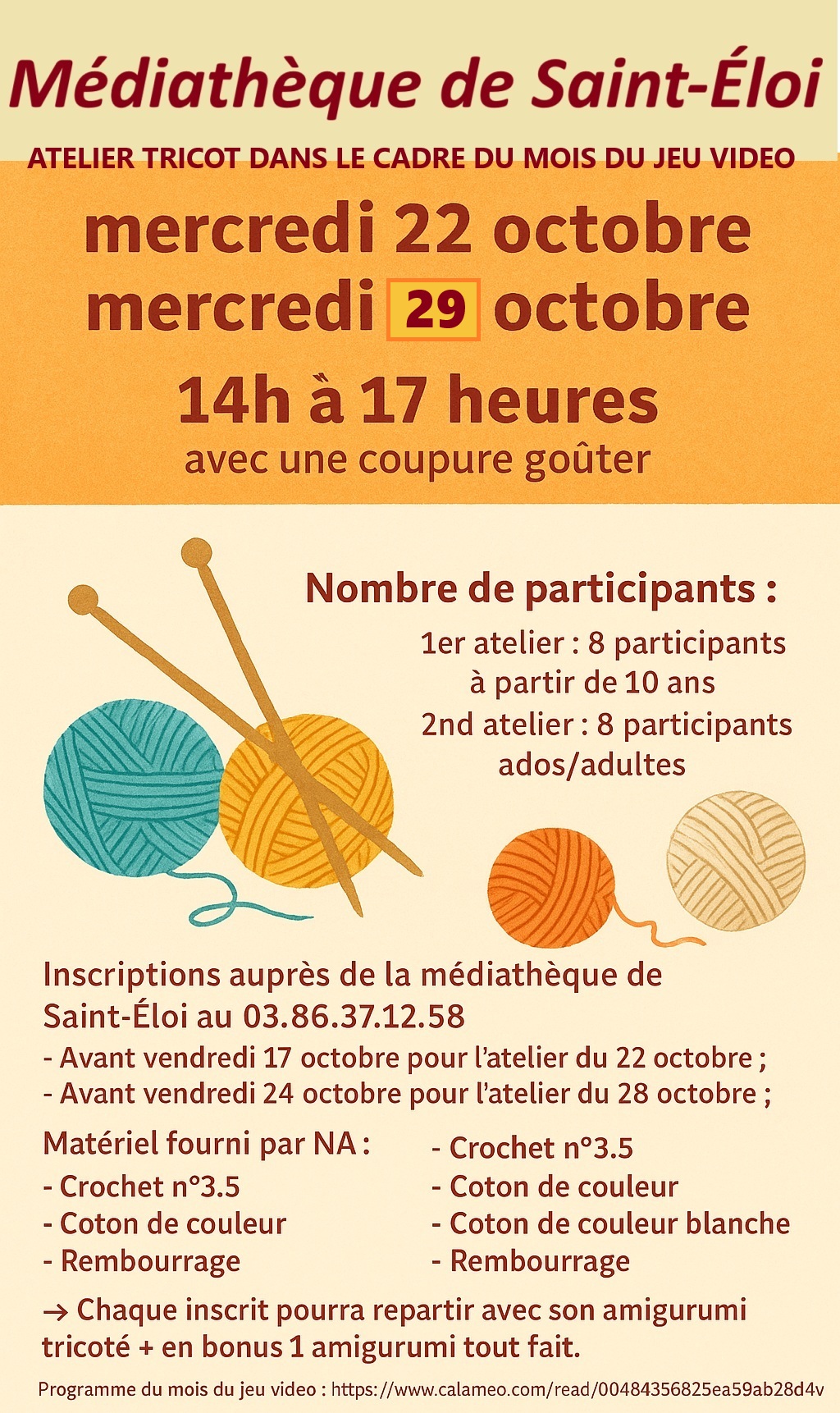 Du 15 octobre au 15 novembre 2025, venez vivre un mois d’animations, de découvertes et de compétitions autour du jeu vidéo à la médiathèque de Saint-Éloi et dans tout le réseau des médiathèques de l’agglomération.
